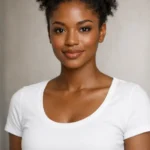 A simple white scoop-neck T-shirt with a fitted silhouette and short sleeves, made from soft, lightweight fabric for a clean, minimal look.